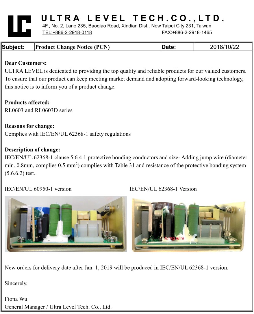 RL0603 single & dual series complies with IEC/EN/UL 62368-1